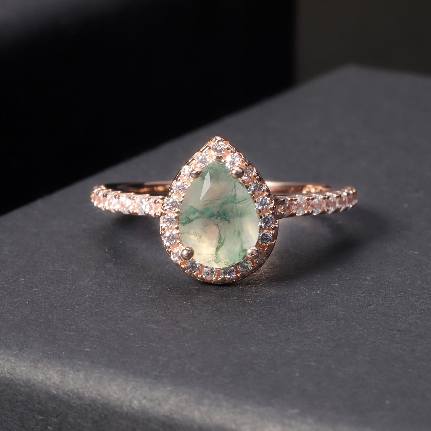 Explore our exquisite collection of pear cut Moss Agate rings. Discover the...