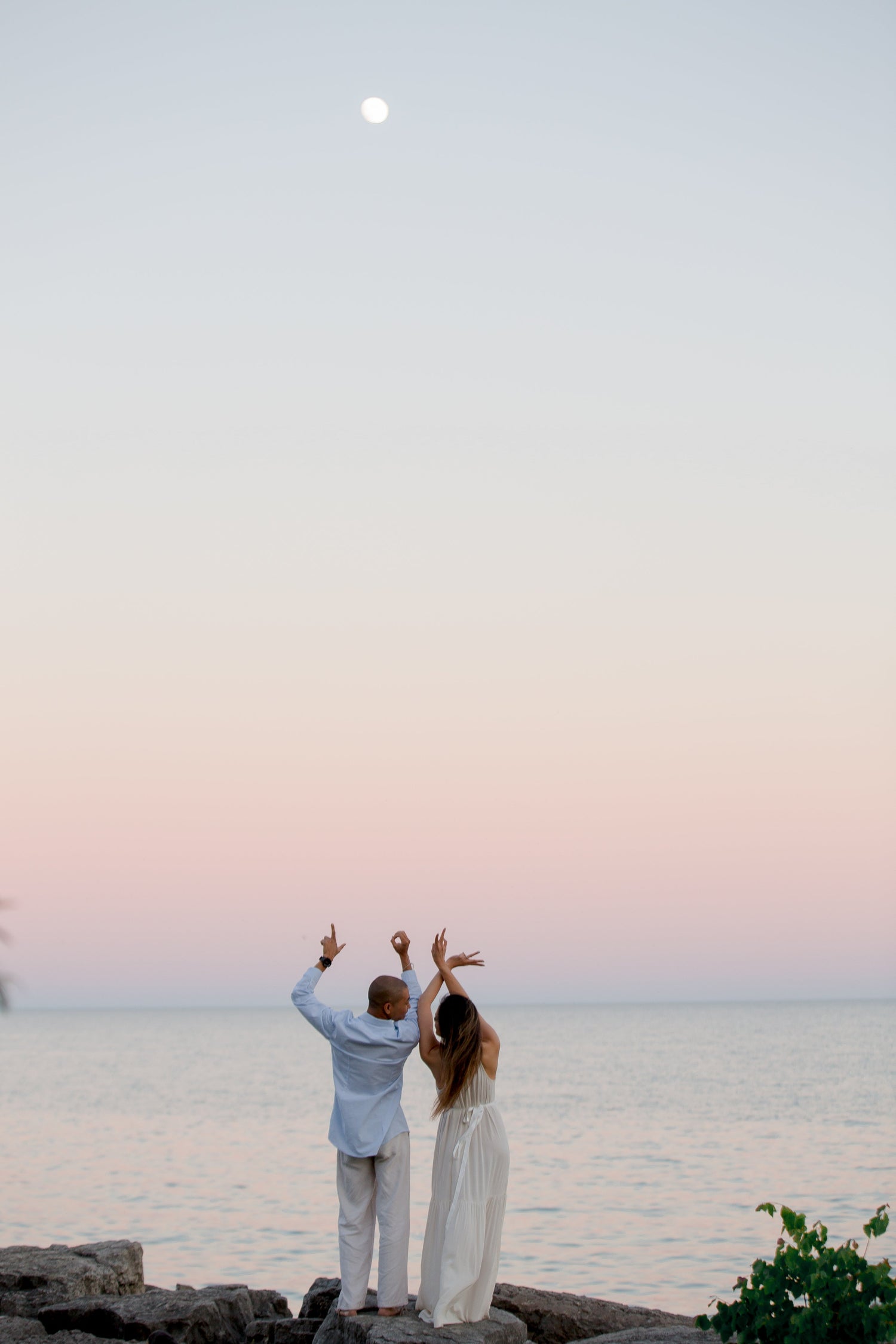 It was a night I'll never forget. We were on a beach, under a sky full of stars, when he got down on one knee with a Moss-Agate ring. It's stunning, with intricate details that symbolize our love. That ring marked the start of our forever journey together.