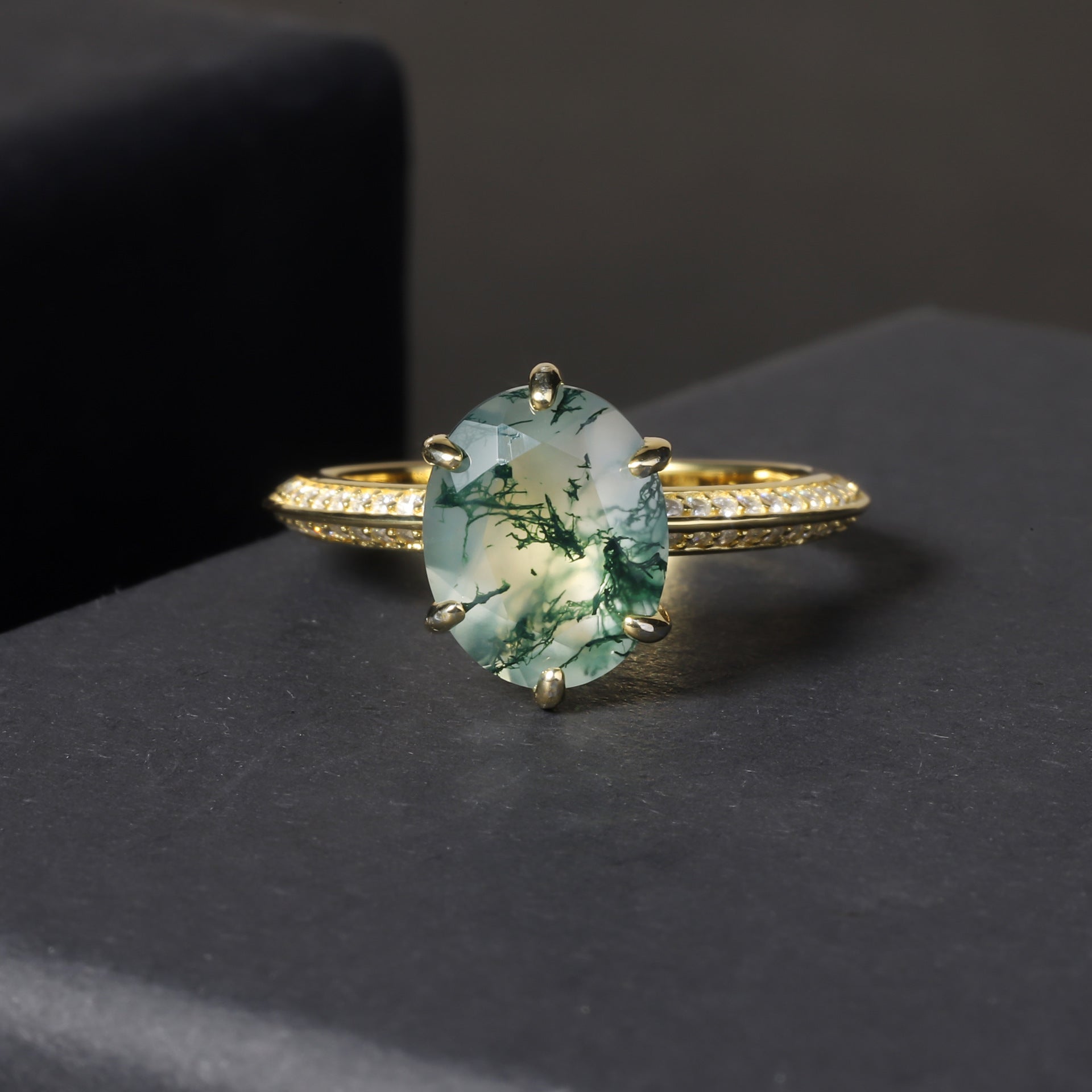 Oval Classic Moss Agate Engagement Ring