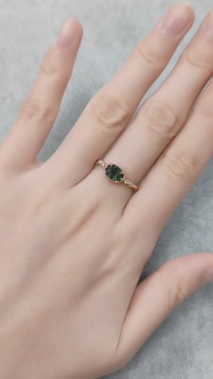 Upgrade your engagement ring with the Oval Moss Agate Classic Cluster Vintage Engagement Ring! Adorned with a stunning oval moss agate stone, this ring offers a timeless and unique design that is sure to impress. With its classic cluster setting, this ring captures the beauty of vintage style and adds a touch of elegance to any outfit. Let this ring be a symbol of your love and commitment.