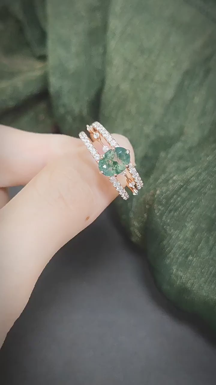 Elevate your engagement with our Oval Moss Agate Classic Engagement Ring! The unique moss agate stone captures attention and adds a touch of nature to your special day. Plus, its stacking capabilities provide versatility for everyday wear. Make a statement and hold onto it forever.