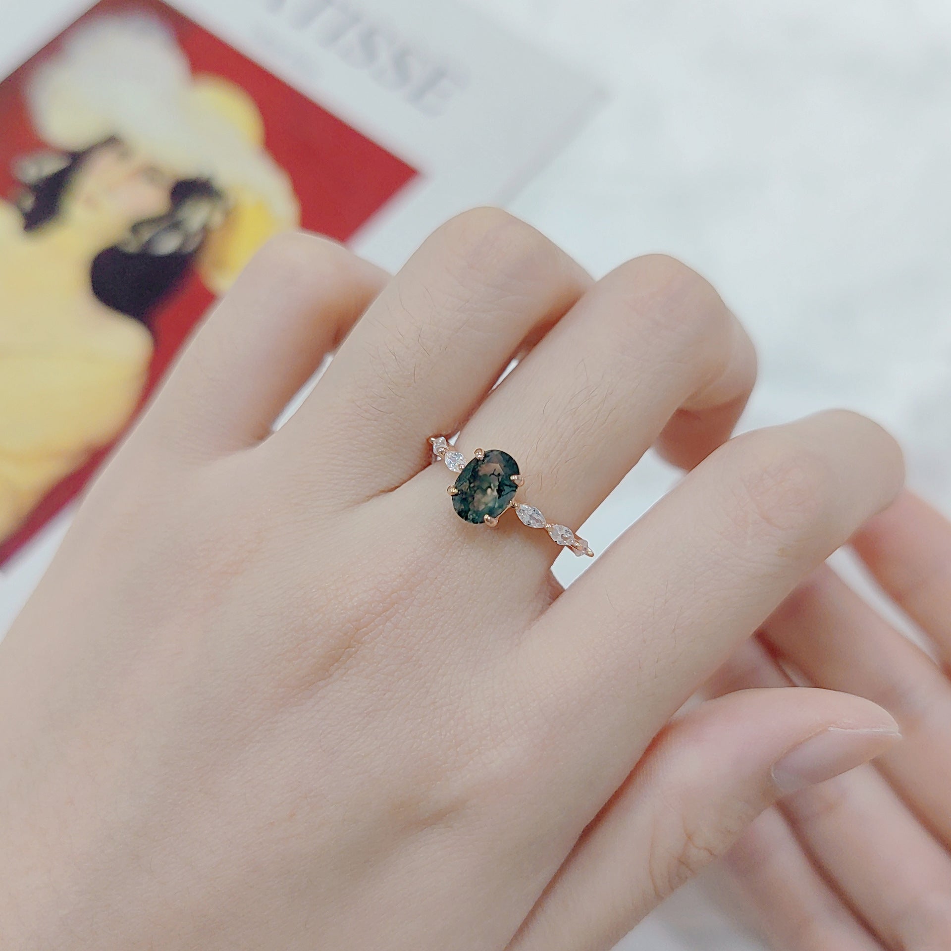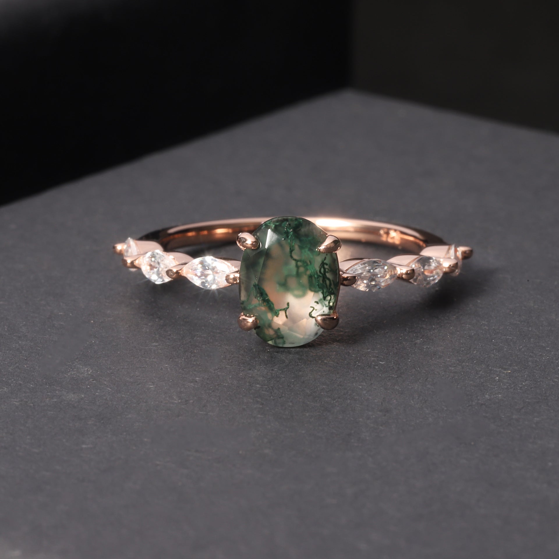 Experience the beauty and uniqueness of our Oval Moss Agate Classic Engagement Ring. The stunning oval-shaped Moss Agate stone is known for its calming and grounding properties, making it the perfect symbol of love and commitment. Show your partner how much they mean to you with this timeless and meaningful ring.