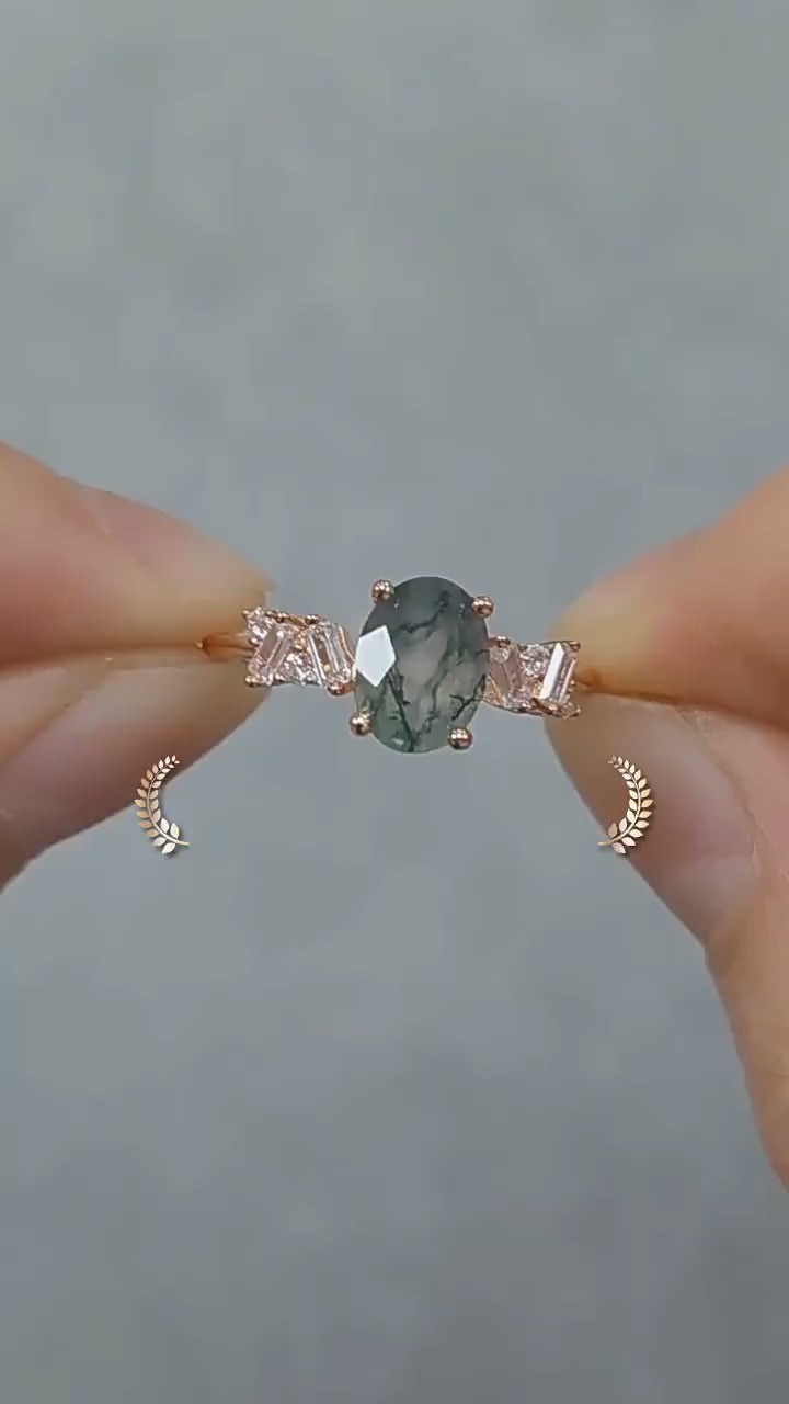 Experience the beauty and uniqueness of our Oval Style Unique Design Moss Agate Engagement Ring! Made with high quality moss agate, this ring features a one-of-a-kind design that will capture attention and make a statement. Perfect for engagements or as a special gift, this ring will add a touch of elegance and sophistication to any outfit. Get yours today and make a lasting impression.