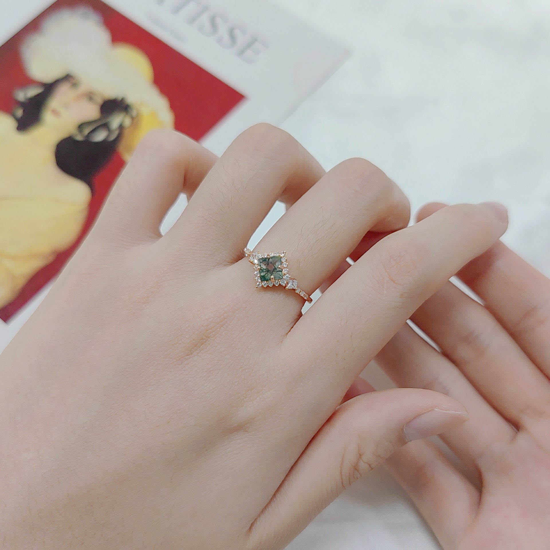 - Main Stone: Moss Agate, 5x5mm