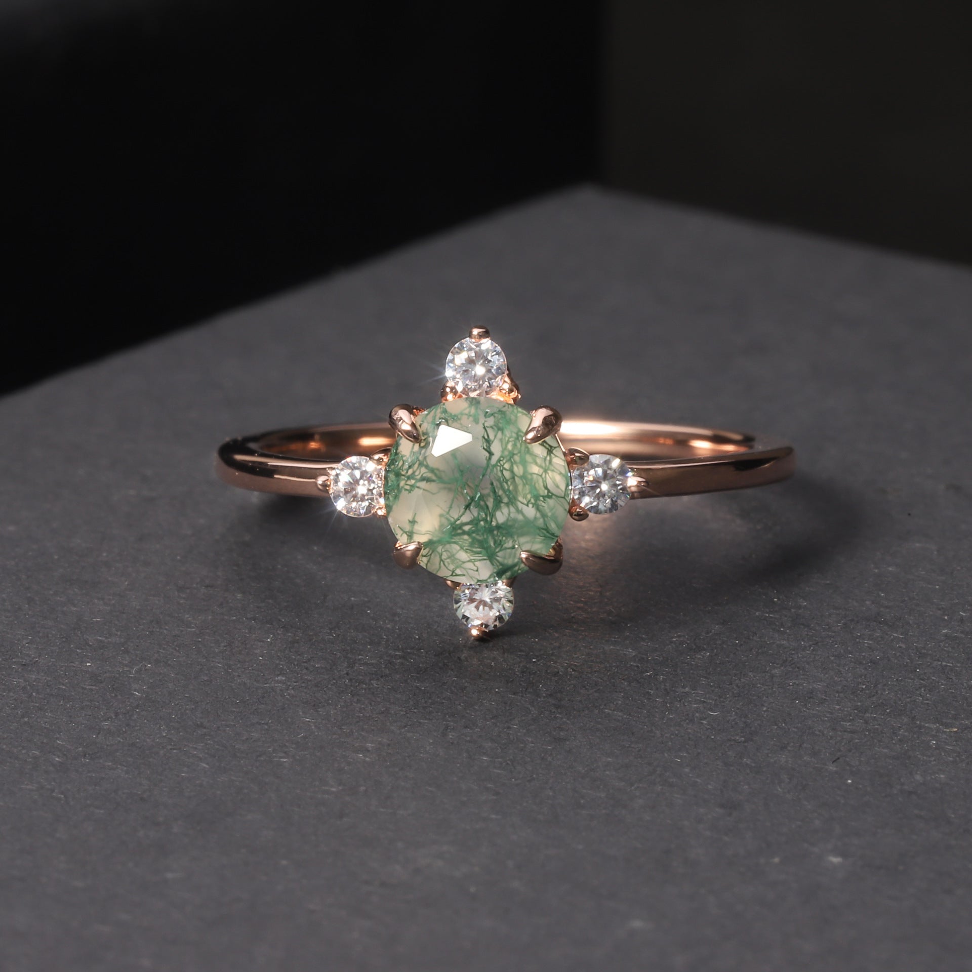 Introducing our Round Moss Agate Engagement Ring! Crafted with precision, this stunning ring features a round-cut moss agate stone that radiates natural beauty. The perfect symbol of love and commitment, this ring will capture hearts and stand the test of time. Give a one-of-a-kind piece for a lifetime of cherished memories.